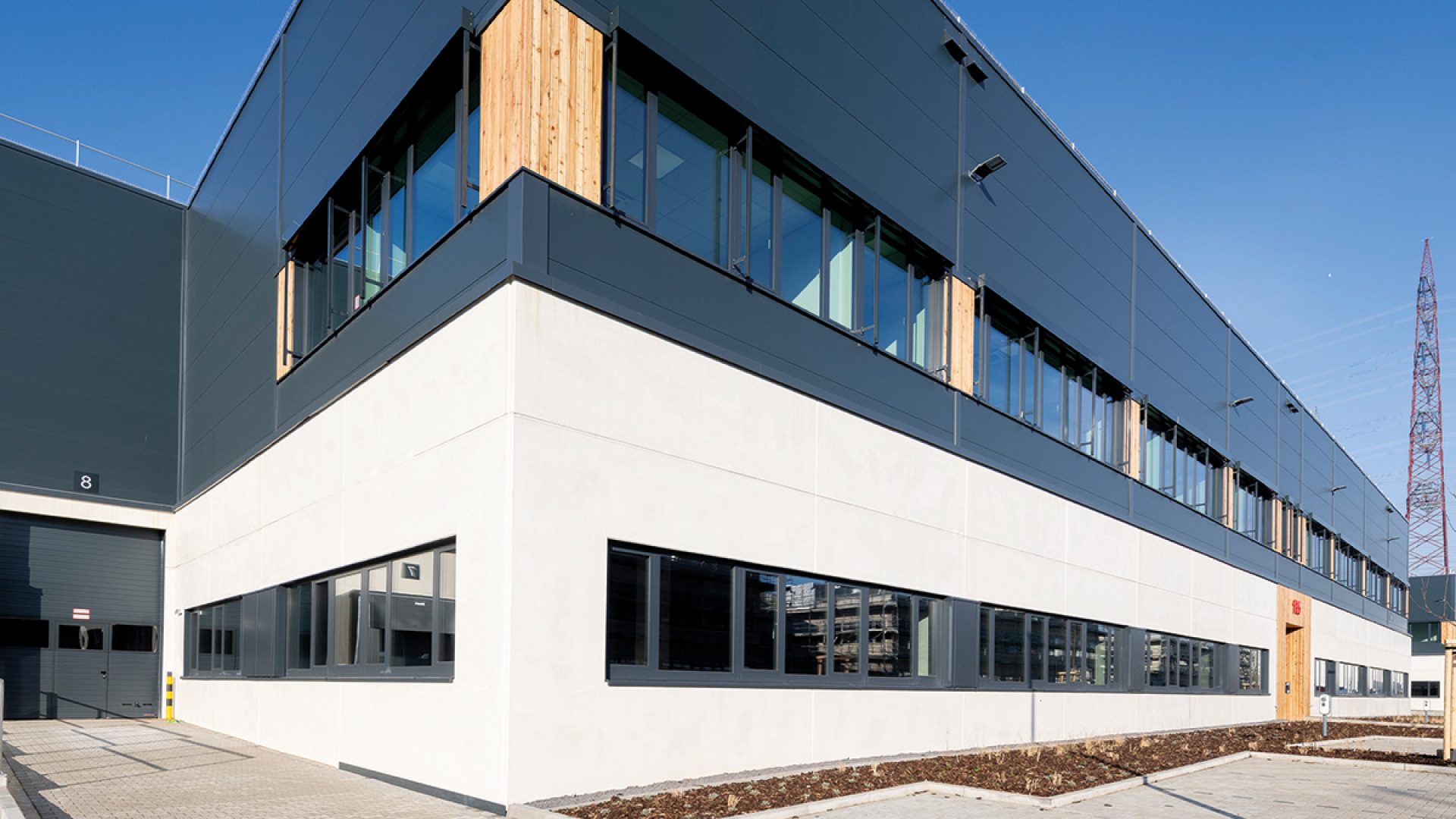 Ce procédé novateur a été mis en application, ces dernières années, pour la construction de plusieurs bâtiments industriels. Érigé en 2016 à Grenoble par le groupe GA et le cabinet d’architecture Arche 5, le bâtiment « Technopole » s’implante au cœur de l’écoquartier de la presqu’île. Partie intégrante du programme GreenOValley, il compte 10 300 m² de bureaux et 7 800 m² de laboratoire. Ce centre de recherche et d’innovation dans la gestion des énergies est la vitrine de Schneider Electric de ce secteur. Le projet a été conçu à l’aide du FullBIM, la maquette numérique 3D du groupe GA qui sert à rationaliser la consommation de matériaux et prévoir ses performances thermiques. Sa structure mixte posée associe une structure métallique à des modules préfabriqués apportant une haute flexibilité. Le laboratoire (66,90 x 110,95 m), réalisé en structure métallique par le groupe Briand (sous-traitant), comprend des portiques articulés en pied, des poteaux et arbalétriers en PRS (profils reconstitués soudés) ainsi que des sheds en toiture.