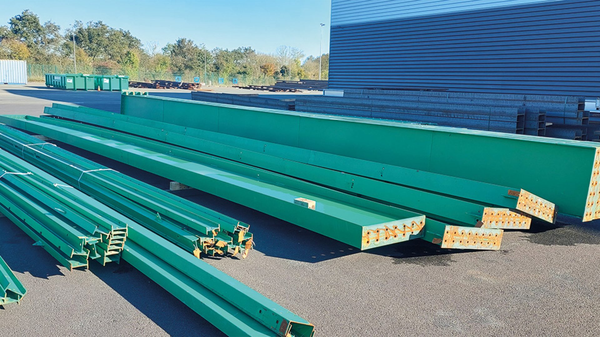 ’acier est également un matériau à haute teneur écologique, dans la mesure où le réemploi de pièces structurelles en acier, légères et maniables, le démontage de structures métalliques ainsi que leur déplacement éventuel vers un autre site sont des opérations courantes bien rodées. C’est le cas de la nouvelle halle industrielle bâtie à Saint-Christophe-du-Bois près de Cholet réalisée par l’entreprise Briand Métal et les agences d’architecture Arcade et DGA, à partir de profils acier provenant de la déconstruction de l’atelier de maintenance de transports publics nantais (2001). Le gisement de 43 tonnes d’acier récupéré, sur un total de 280 tonnes, source de matériau « zéro carbone », a été réemployé en profilés remis à dimension et insérés dans le nouvel édifice. Ces éléments étant dotés d’une qualité identique à celle d’une charpente neuve, puisque l’acier conserve ses propriétés mécaniques dans le temps. Pour cet acier se substituant à un acier neuf, le réemploi a réduit les émissions et pollutions d’un éventuel recyclage, en supprimant tout transport, le processus ayant suivi les règles professionnelles établies depuis 2024 par le CTICM. Une démarche assez proche, avec la construction en 2023, par le même Groupe Briand, de sa nouvelle usine de peinture par thermolaquage Europ’A à Beaurepaire, un vaste ouvrage de 6 000 m² qui s’étire sur 170 m de long. Le choix du thermolaquage, qui permet d’éviter le recours à des solvants pour la finition des pièces métalliques, s’inscrit dans la démarche d’écoresponsabilité de Briand, les excès de peinture étant réemployés dans le circuit, avec zéro déchet. Les éléments métalliques issus des anciennes halles Alstom de Nantes ont été ainsi récupérés et réemployés. Les 70 poteaux et poutres de l’armature provenant de la déconstruction de la charpente treillis centenaire de ces halles navales (100 tonnes d’acier) ont été démontés, nettoyés, taillés, renforcés et réusinés pour former les deux tiers de la structure posée, en générant une économie de 160 tonnes équivalent CO2.