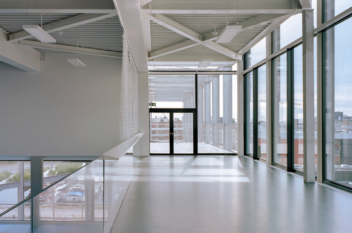 Et écologie oblige, ce bâtiment passif et durable est raccordé au système de chauffage utilisé dans le projet voisin de nouveaux quais (Nieuwe Dokken), où une partie des besoins en chauffage est alimentée par des déchets organiques et les eaux usées, le reste des besoins étant couvert par une entreprise voisine. Ce projet offre une expression subtile et épurée, où se côtoient une boîte pleine et une boîte creuse.