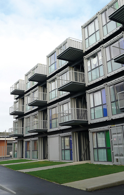Le mode de construction hors-site a le vent en poupe et gagne en performance, qu’il s’agisse d’économie ou de rapidité de chantier. Par essence même, l’acier y joue un rôle clé, grâce à ses composants légers, maniables et facilement transportables, depuis les ateliers de fabrication jusqu’au site d’assemblage. De quoi afficher une baisse de la circulation des camions de l’ordre de 39 %, dans le cas du hors-site, ainsi que des émissions de carbone. L’industrialisation de la construction acier, à base d’éléments standard, comme des structures préfabriquées en usine mises en œuvre in situ, permet de baisser le nombre de pièces et leur temps de pose sur site, et d’optimiser l’organisation et la logistique des chantiers, tout en réduisant les nuisances. Les risques de malfaçons et de retards imprévus s’en trouvent minimisés, et la sécurité et les conditions de travail améliorées, avec une baisse des coûts de travaux. Le cas extrême est celui de containers acier réutilisés pour édifier des bâtiments.