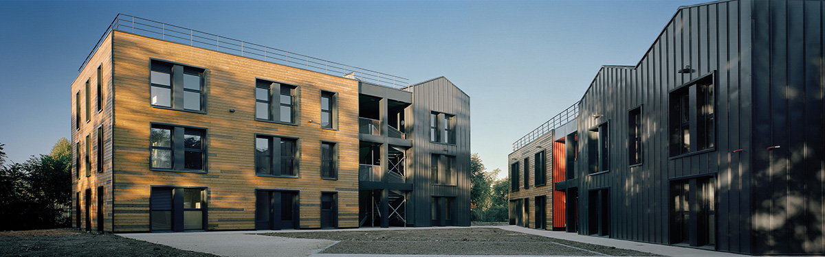 Ce concept, qui offre à tout bâtiment une grande capacité à évoluer – par ajout, soustraction ou remplacement d’éléments de structure ou de façade –, permet de simplifier le démantèlement à venir de l’ouvrage, avec un réemploi de certaines pièces en acier. Le projet précurseur hors-site demeure la résidence étudiante A’Docks (Le Havre) de 100 studios, réalisée en 2010 par l’atelier Cattani Architectes, à l’aide de containers portuaires recyclés, superposés, juxtaposés et reliés entre eux, et pourvus de façades vitrées. Récemment, le bâtiment Modul’Air, conçu en 2021 par les agences LFA et Calq, à Brétigny-sur-Orge, et qui abrite diverses sociétés, empile 18 containers maritimes préfabriqués et pré-équipés en usine, qui s’insèrent sous un vaste parapluie doté d’une structure à profils d’acier du commerce. Un programme et une morphologie autre pour le centre d’hébergement d’urgence l’Hestia de 46 logements, bâti en 2020 à Périgueux (24) par l’agence Moonarchitectures. Le système constructif hors-site mis en œuvre, qui réutilise 51 anciens containers maritimes en acier pérennes – pré-équipés en atelier et isolés extérieurement – confère au projet une empreinte carbone basse et un bilan environnemental qualitatif.