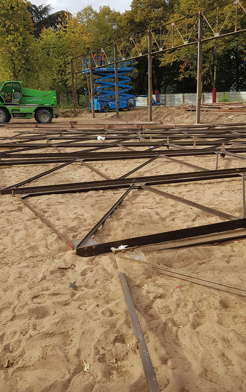 La déconstruction et le démontage d’un ouvrage bâti en acier sont aisément réalisables, car les systèmes constructifs comptent souvent des profils standards, assemblés par boulonnage et aptes à être démontés, à l’instar de grands mécanos. Exécuté de manière propre et maîtrisé, ce démontage permet de trier des pièces liées à un usage évolutif. Lesquelles peuvent être récupérées, en vue d’un réemploi au sein de nouveaux projets, tous les éléments étant réemployables, excepté ceux noyés dans les fondations. Cas pionnier d’écoconception, le Stade 974 de 40 000 places, érigé en 2021 à Doha, au Qatar, par Fenwick Iribarren Architects pour la Coupe du monde de football 2022. Sa charpente acier boulonnée – cernant les 974 conteneurs recyclés multicolores qui forment les espaces clos de l’enceinte – a été démontée après le tournoi pour être remontée ailleurs, les panneaux des plafonds et éléments de tribunes ayant été transportés dans ces conteneurs. Le bilan carbone a été réduit, grâce aux économies de matières et de déchets induits, et aux principes vertueux d’économie circulaire. La preuve qu’un édifice d’ampleur peut évoluer et être pensé de façon temporaire pour être réutilisé ensuite. Dans l’Hexagone, une opération modeste à Gennevilliers (92), où son centre équestre datant de 1980 a fait l’objet d’une démarche de réemploi. En 2022, le CTICM a réalisé un diagnostic préalable de sa charpente acier, avant son démantèlement. Cette analyse a permis de s’assurer de la faisabilité du projet, en expertisant les structures acier susceptibles d’être réemployées. Après la phase de réparations, le démontage soigné de la charpente a été mené par le constructeur métallique Viry (groupe Fayat). Les éléments de structure et les fermes acier ont été réemployés pour bâtir l’usine du Sytevom de Noidans-le-Ferroux (70).